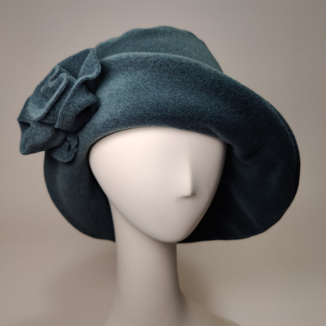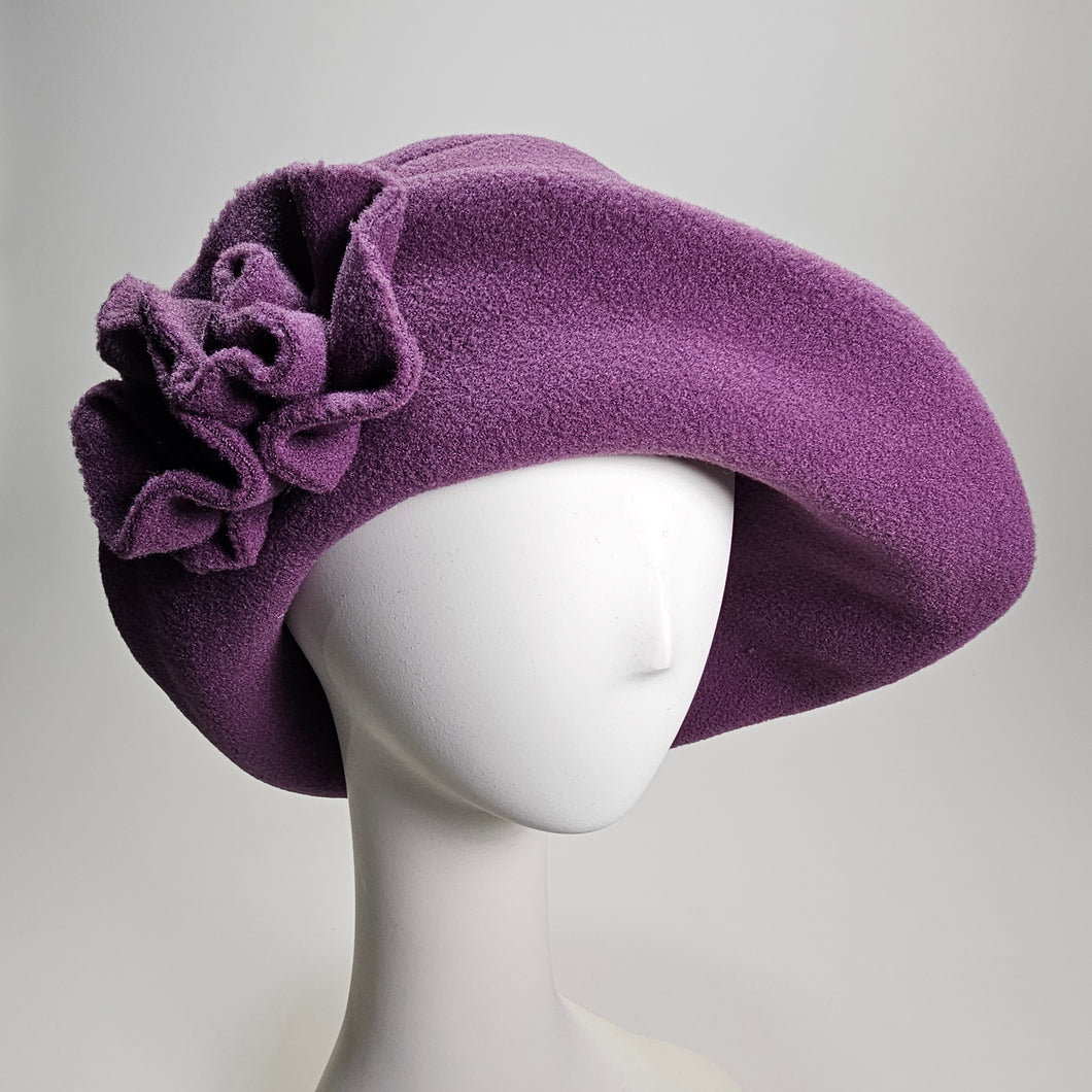Romantic and wide-brimmed, this polar fleece hat features two hand-formed flowers on the side. The Melinda hat is one of our most popular hats and looks good on most everyone.