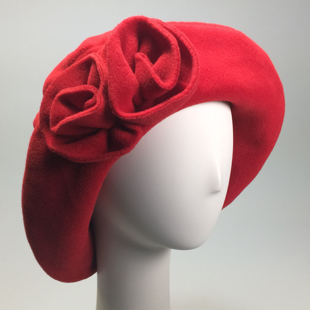 Dramatic and versatile, there are lots of ways to wear this hat. When the two flowers are worn a bit off to the right, you've got a great, everyday look. Wear the flowers down by the ear for a more dramatic sweep. You can even wear it with the flowers in the back -- that deep brim in front keeps snow and rain off your glasses.
